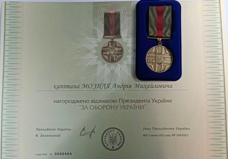 Відповідно до указу президента України Володимира Зеленського, військовослужбовця Збройних Сил України, капітана Мозиля Андрія Михайловича, нагороджено відзнакою "За оборону України". Про це повідомила Тлумацька міська рада, інформують "Вікна".