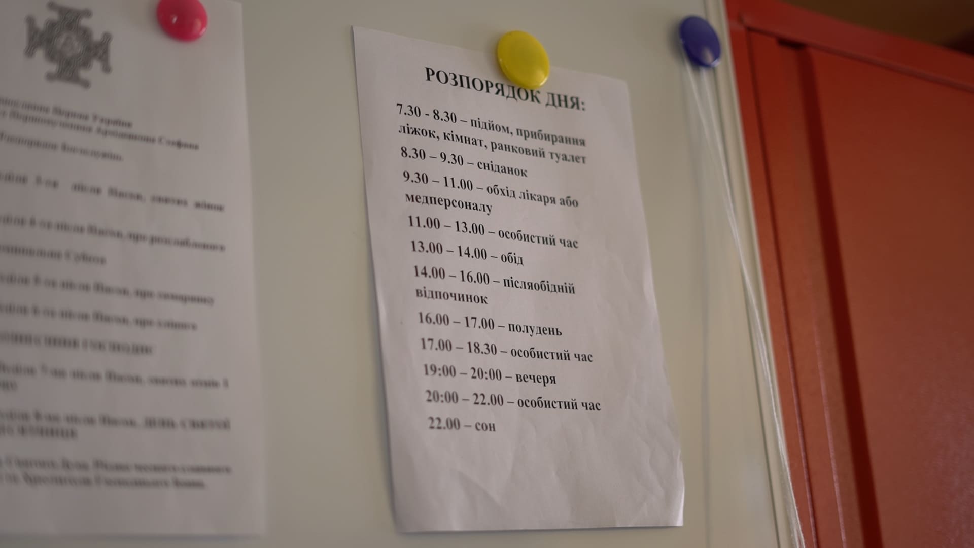 «Постійні бесіди, в тому числі із психологами, дають свої результати. Завжди стараємося урізноманітнити їхнє дозвілля, в чому нам допомагає управління культури. Сьогодні на 16:00 заплановано концерт. Від управління спорту — щотижневі зарядки, які підібрані під кожну категорію, адже у нас є одинадцять лежачих людей та двоє на колясках. Часто приходить священник, є своя бібліотека. Варто зазначити, що тут люблять читати. Перед Новим роком робили гірлянди на ялинку, спільно пекли торт. Картини, які висять на стінах — це малюнки по номерах наших мешканців, а на вулиці — висаджені квіти».