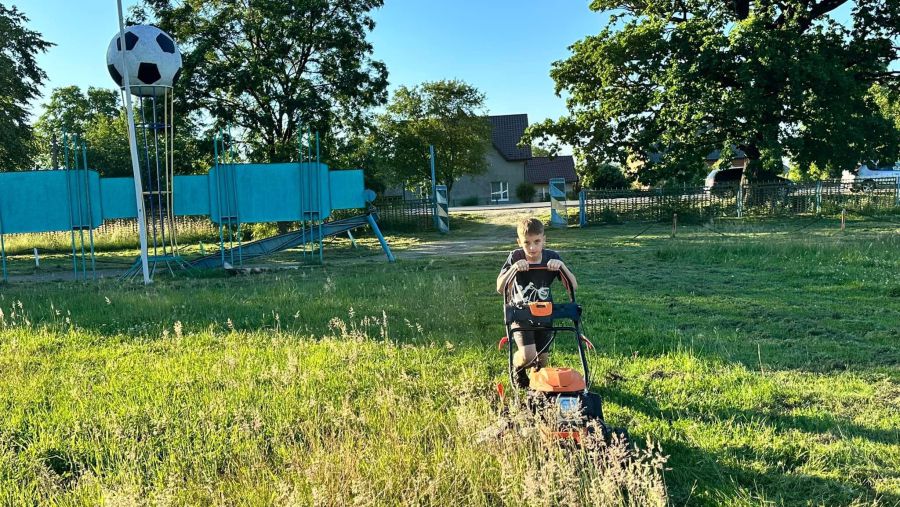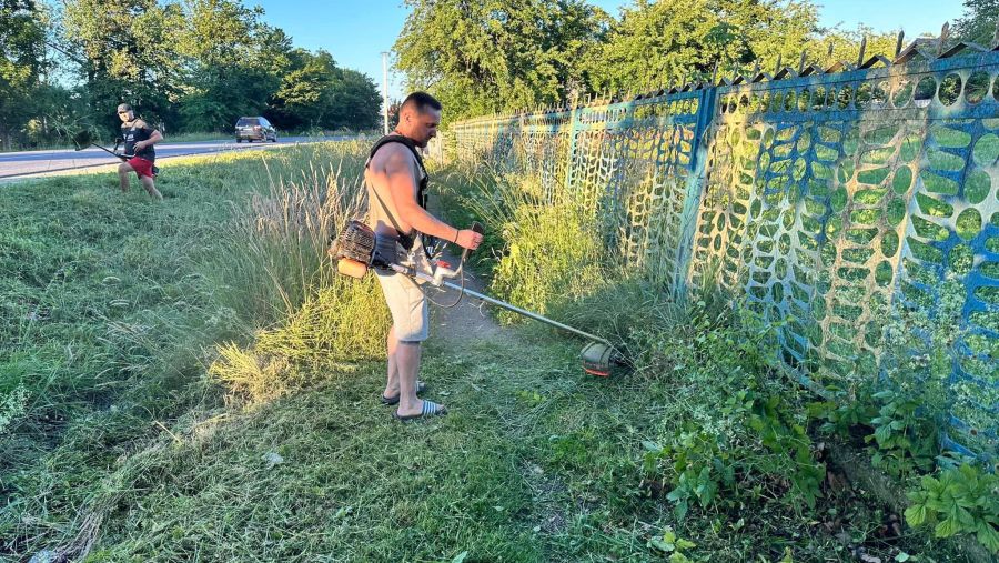У суботу, напередодні футболу, голинські ґазди зібралися, щоб упорядкувати стадіон, зокрема, покосити траву.