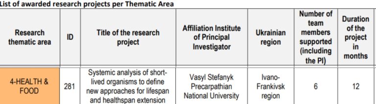 Проєкт "Systemic analysis of short-lived organisms to define new approaches for lifespan and healthspan extension" спрямований на вирішення актуальної біомедичної проблеми — продовження тривалості життя та здорового старіння.