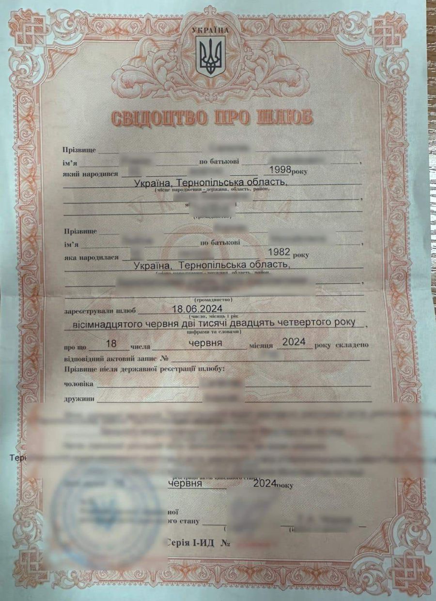 Як розповіли у Західному регіональному управлінні ДПСУ, молодят — 42-річну жительку Бережанського району Тернопільщини та її 25 річного чоловіка – затримали прикордонники вночі у пункті пропуску «Грушів». Шлюб між ними був зареєстрований 18 червня цього року, інформує zaxid.net.