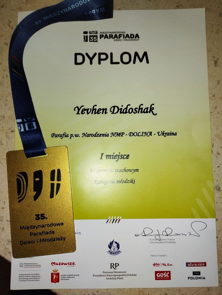 Євген Дідошак взяв участь у змаганнях з шахів і посів перше місце.