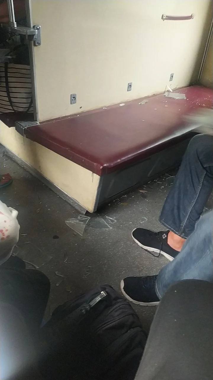 Також Telegram-канал опублікував фото з ушкодженого вагону, на яких видно розбиті вікна і сліди крові.