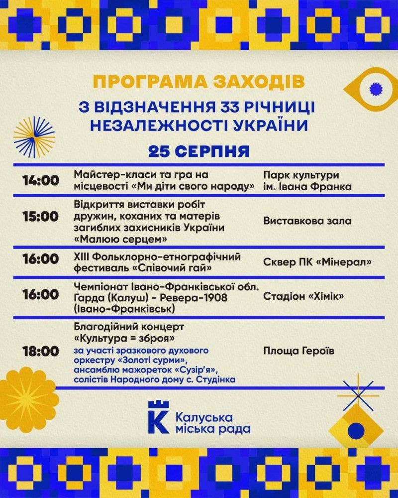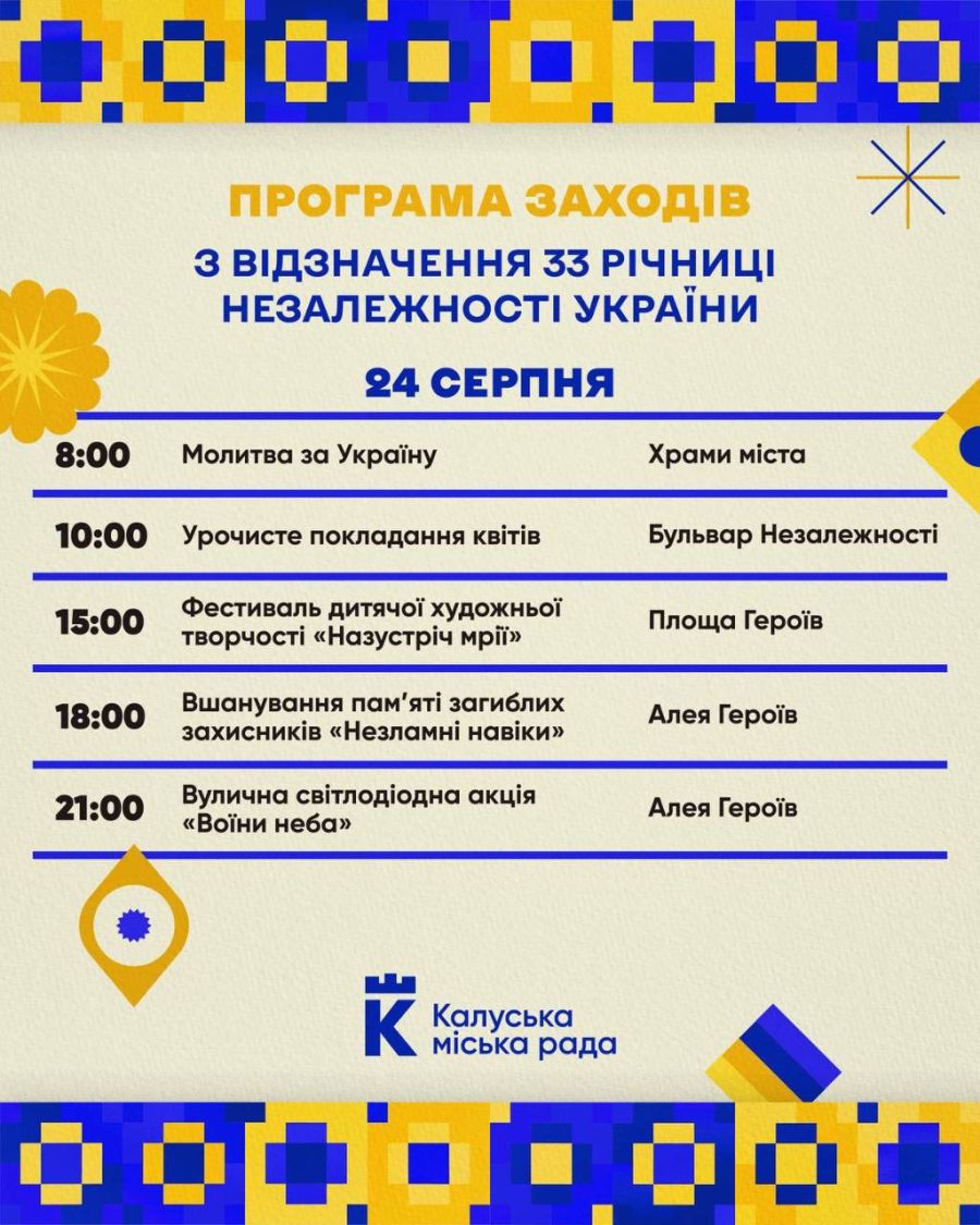 Калуська міська рада оприлюднила програму відзначення 33 річниці Незалежності України.