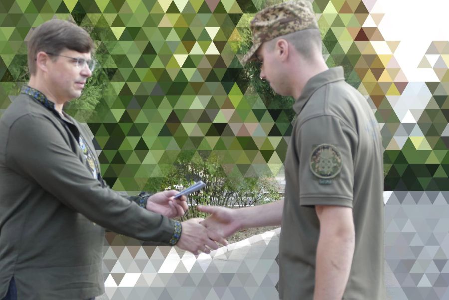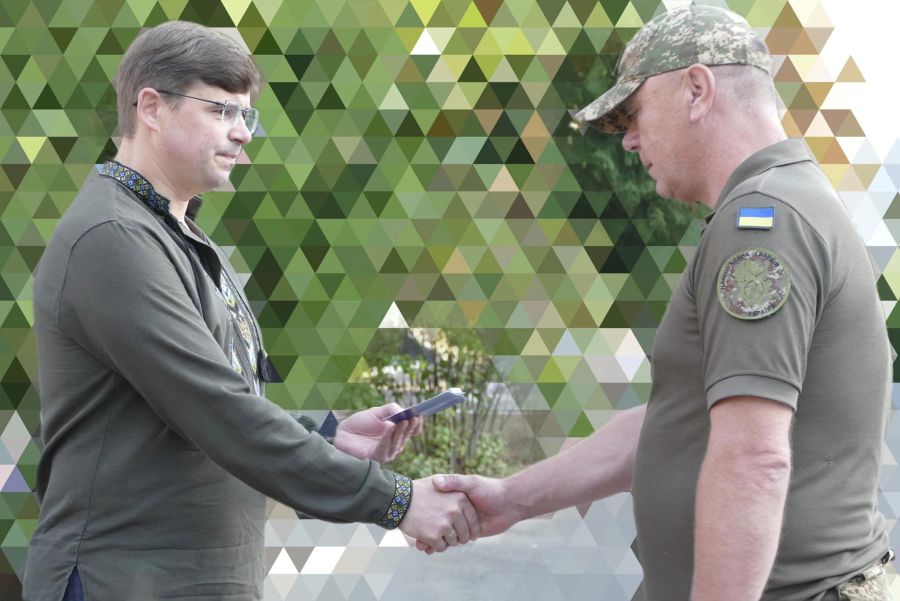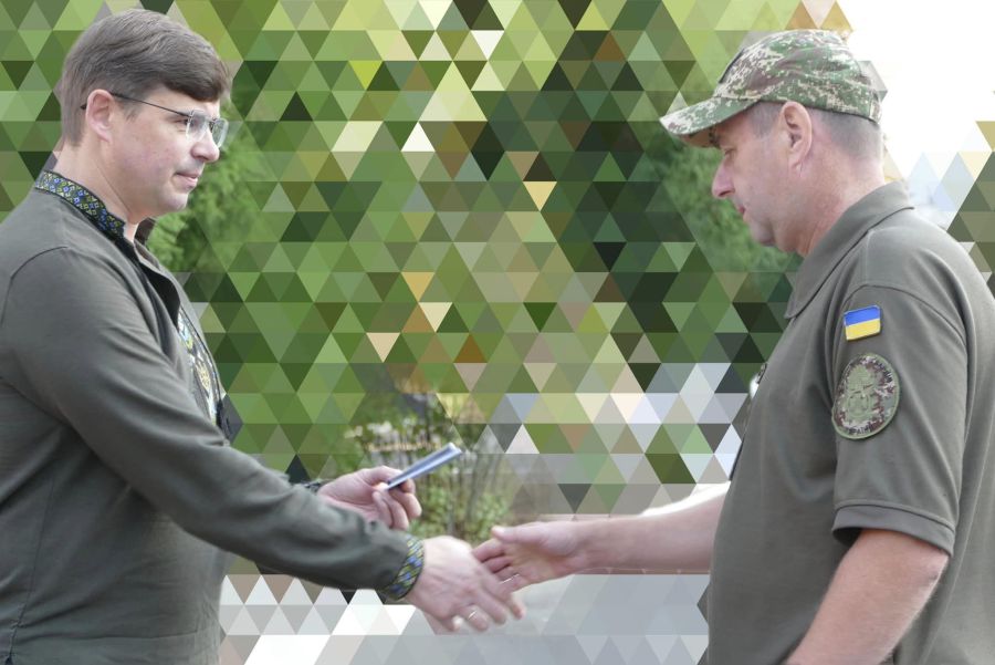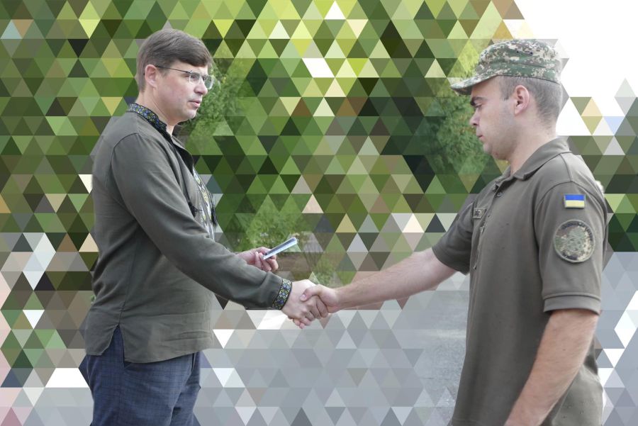 Андрій Найда вручив почесні відзнаки — медалі «За оборону рідної держави» чотирьом воїнам однієї з військових частин: