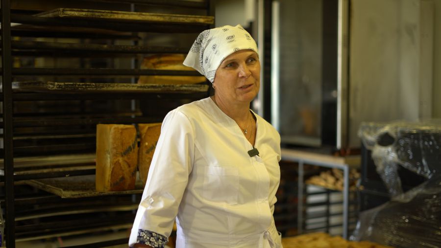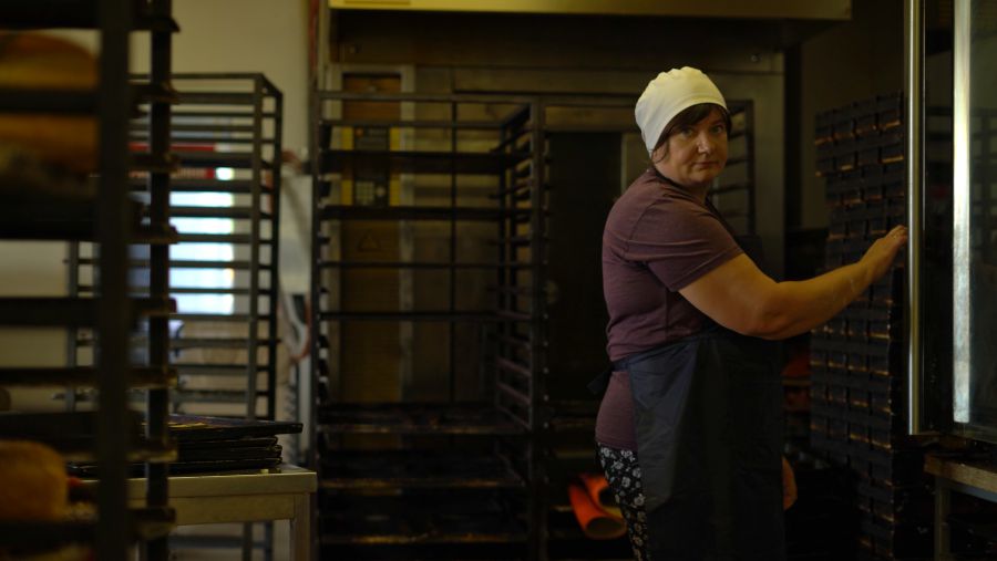 Десята година ранку. У пекарні Світлани Микитин — дев’ять різновидів хліба уже в ящиках чекають на доставлення. Деяке печиво в коробках, інше — в печі, щось — на пательнях, робочих столах та в руках трьох жінок-помічниць. Марія місить тісто, а Наталя та інша Марія — формують вівсяне печиво. Одна з жінок ділиться своєю історією.