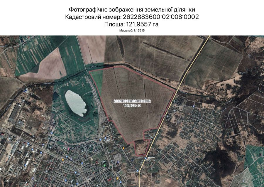 Земельну ділянку в суборенду передає ТОВ «Державний земельний банк» строком на 14 років. Початкова ціна продажу становить 296 868,37 гривень без урахування податку на додану вартість. Це 12% від її нормативної грошової оцінки. Зазначено, що на суму річної суборендної плати додатково нарахують ПДВ.