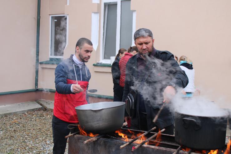 "Це моя ініціатива. У нас у Попасній на Покрову в останні роки завжди були такі схожі гуляння, був фестиваль борщу. І ми ще влітку ініціювали, що на Франківщині такий фестиваль проведемо. Ми вирішили це зробити з місцевою громадою. У Калуші багато наших переселенців. Ольга Жидкова запропонувала долучити "Схід. SOS". До того ж 1 жовтня — ще День людей похилого віку. Ми вирішили це все зробити у нашому геріатричному центрі для людей з інвалідністю. Просто якщо вже варити 40 літрів борщу — то це має нести користь. Ми їх віддамо мешканцям геріатричного центру", — зазначив голова Сєвєродонецької РДА Роман Власенко.