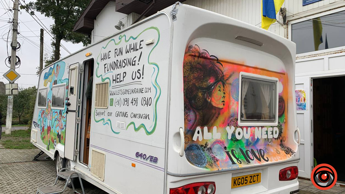 Окрім цього, поблизу автівки, діти із Загір’я стрибають на батутах, інші співають, відпочивають на зручних диванчиках чи грають у перегони на приставці: