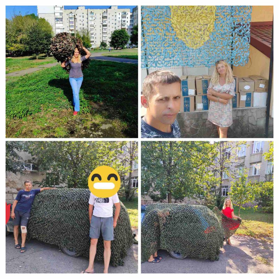 У маленькому кабінеті, хоча волонтери запевняють, що тут є де «розігнатись», зустрічаємо двох жінок-трудівниць та одного чоловіка, котрий час від часу готові сітки виносить на вулицю. Тетяна Фурман — з міста Новий Буг Миколаївської області. Коли почались прильоти, зрозуміла, що потрібно рятувати сина.