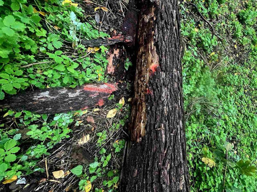 Ранньої осені ці дерева неважко помітити неозброєним оком. На них — сіра кора, яка місцями геть злізла, і повністю відсутнє листя. Також у парку є дерева, які мають серйозні проблеми з кореневою системою.