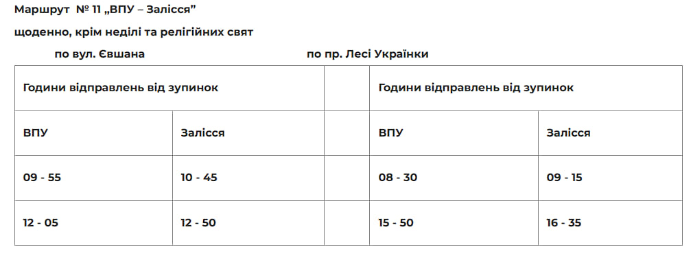Також з 1 листопада будуть здійснюватись додаткові рейси за маршрутом №8 "Карпатська кераміка (ВПУ) — Височанка" за таким графіком: