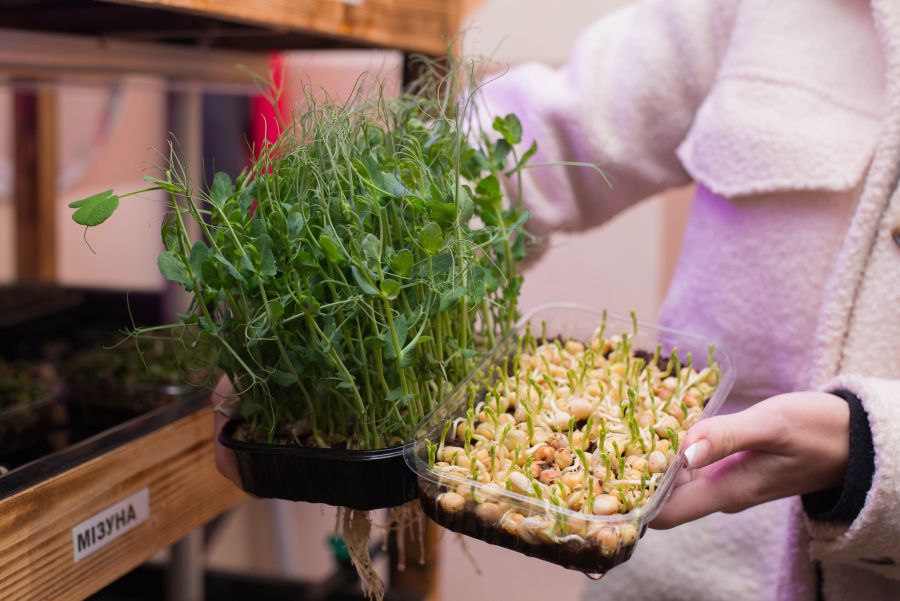 «Соняшник, горох, червона капуста, гірчиця та два види редиски — це була перша наша мікрозелень. Пізніше додали мізуну — правда, в спеку вона погано росла. Зараз повернулись до її вирощення і додали ще цибулю, бо отримали на неї запит в одному із місцевих кафе. Правда, остання росте трохи довше, як горох — десь до двох тижнів. З обласним центром пробуємо нову співпрацю, бо зоомагазин відпав, а зараз на пробу наші культури взяв ресторан здорового харчування».