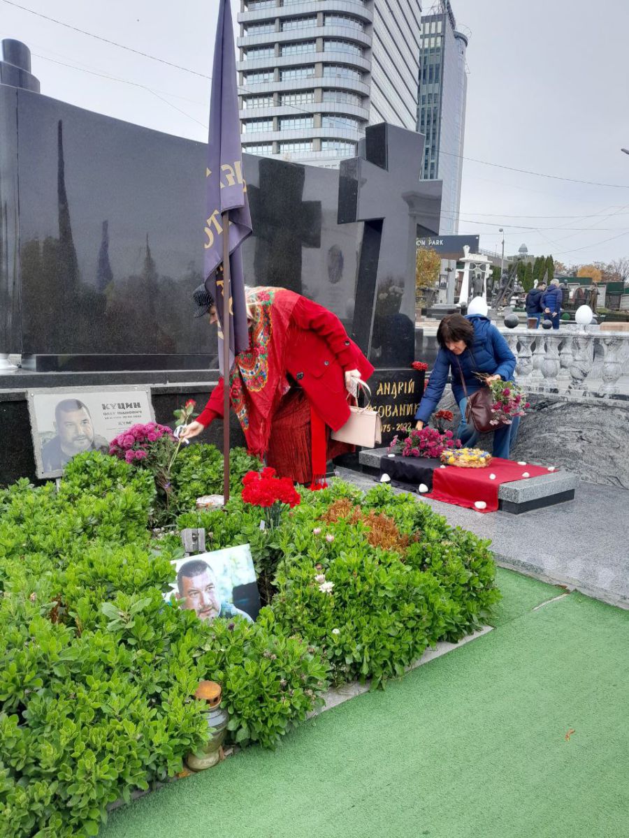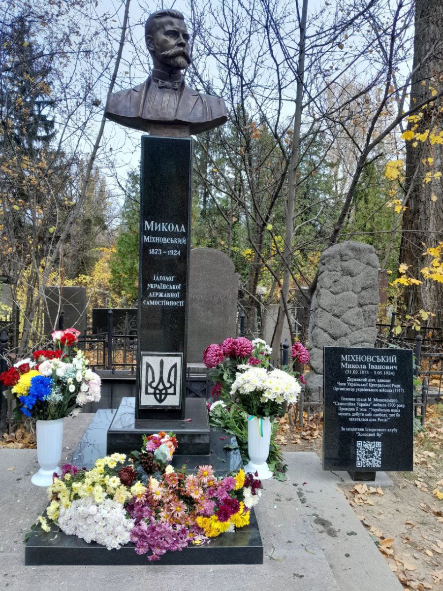 "Серед цих осінніх букетів є й квіти від імені прикордонниці Ірини Неглядової та Ганни Счасної із Січеслава, вірної дружина сл. п. козака "Правого сектора" Андрія "Сім’янина". 2000 грн пожертвував на пам’ятник кобзар Михайло Коваль із Черкащини, син якого Роман 13 вересня 2022 року безвісти пропав на Бахмутщині. 3000 грн на пам’ятник Міхновському пожертвував Геннадій Антіпов, батько Дениса Антіпова, який поліг за Україну 11 травня 2022 року. Ми поставили Денисові пам’ятник у Холодному Яру. А найбільші внески здійснили Максим Коляденко та Олексій Мушак — кожний з них офірував по 120 тисяч гривень".