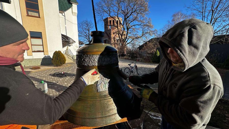 "Дзвін 1926 року. Коли прийшли німці, його закопали. А згодом встановили на триметровій висоті у старій дзвіниці. Вага "дзвону "Ілля" — 345 кілограмів. Ми спочатку його зняли, важко було опустити, а потім бусом перевезли на подвір’я нового храму. Там відчищали", — розповідає Іван Мазурик.