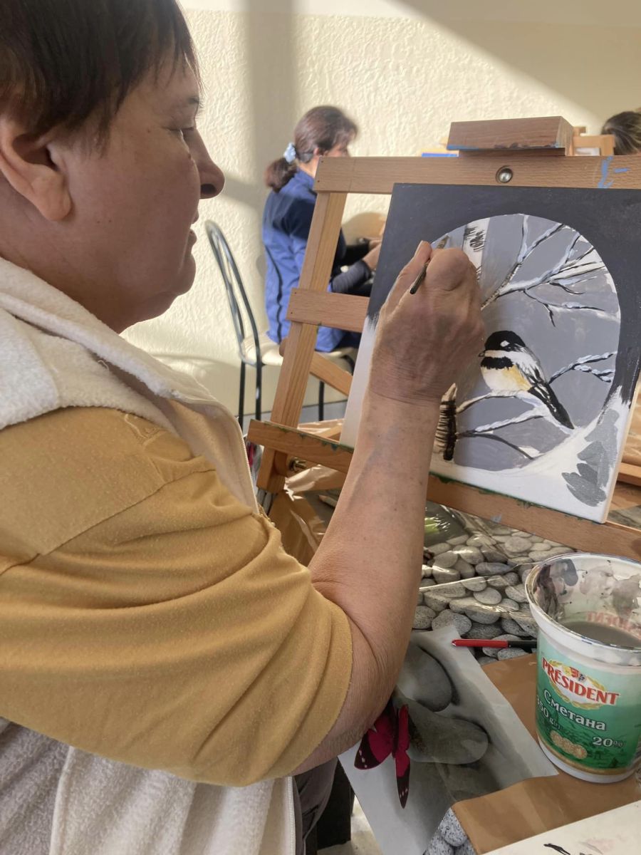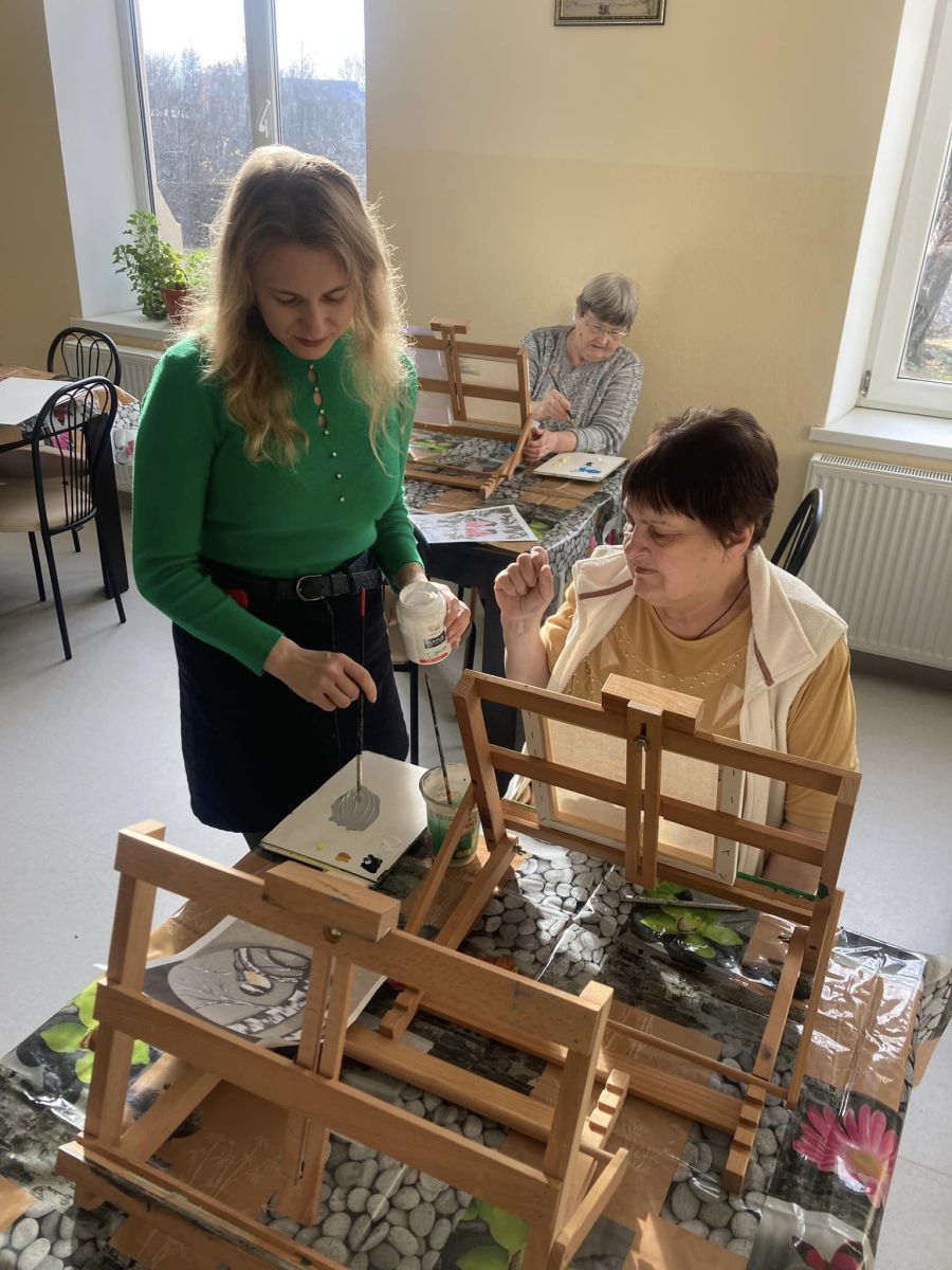 Упродовж кількох годин підопічні Калуського геріатричного центру мали нагоду створити власну картину, яку малювали акриловими фарбами на полотні на підрамнику.