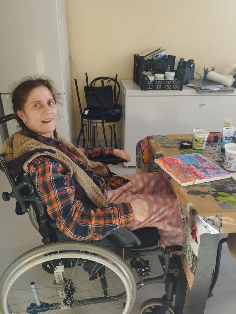 "Живе у нашому геріатричному центрі дівчина Іра. Вчора трошки працювала з нею. Працівники (сама Іра не розмовляє) сказали мені, що потрібно водити її рукою. Для мене було великою радістю в певний момент відчути, що Іра сама водить пензликом", — поділилася враженнями зберігачка фондів виставкової зали, художниця Галина Турчик.