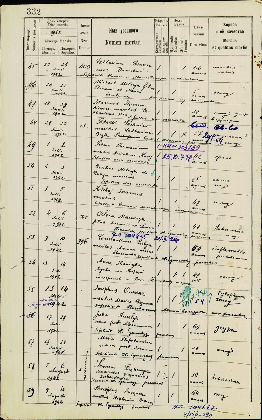Ця книга зберігається в Державному архіві Івано-Франківської області та містить інформацію про смерті та їх причини за 1901-1944 роки. Тільки в 1942 році зафіксовані смерті від голоду, і така причина смерті вказана для 19 померлих: