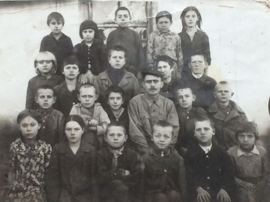Тим часом настало 1 вересня 1945 року і моя мама пішла до першого класу. Оскільки дідо ще на Лемківщині навчили мою маму читати та писати не тільки українською, але й польською, чеською, словацькою і церковнослов'янською мовами, мамі в першому класі не було що робити, тому її на другий день перевели одразу до другого класу, в якому навчалася старша сестра Аня. Збереглося фото їхнього класу з учителем. Однак не навчання насамперед врізалося в пам'ять матері, а наростання виснаження від голоду однокласників. Ситуація і для маминої родини була б абсолютно безнадійною, якби раптом не стали повертати зерно, витрачене на засів полів з незібраним урожаєм на Лемківщині. Нарахували кілька центнерів зерна, яке видавали порціями. Тому дідо з каменя витесали круг і виготовили жорна — для перемелювання зерна. Це рятувало від голоду, але сіяло неприязнь до переселенців серед місцевих.