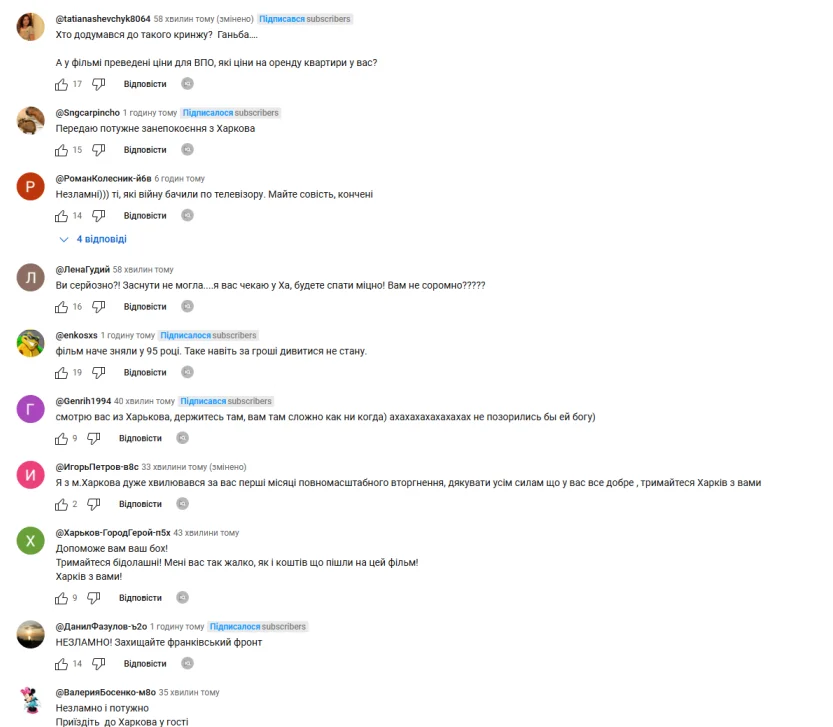 Згодом у соцмережах негативні коментарі до фільму почистили, а в youtube взагалі закрили можливість коментувати.