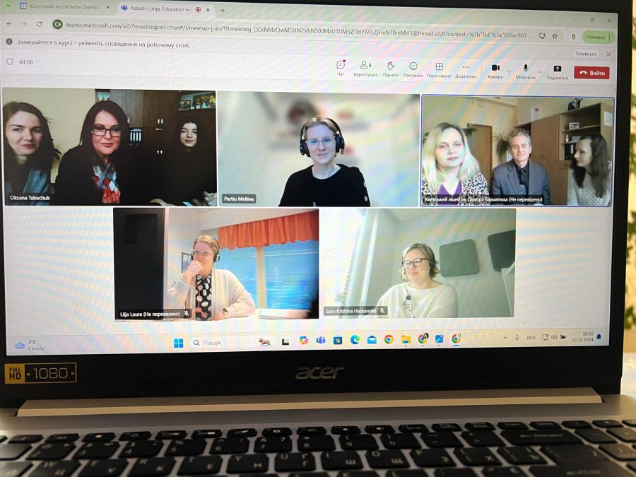 Під час онлайн-зустрічі з калушанами спілкувались директори двох шкіл Лог’я: Muijala Primary School — Lilja Laura, Laurentius school — Satu-Kristiina Hautamäki. Модерувала зустріч Partio Meliina.