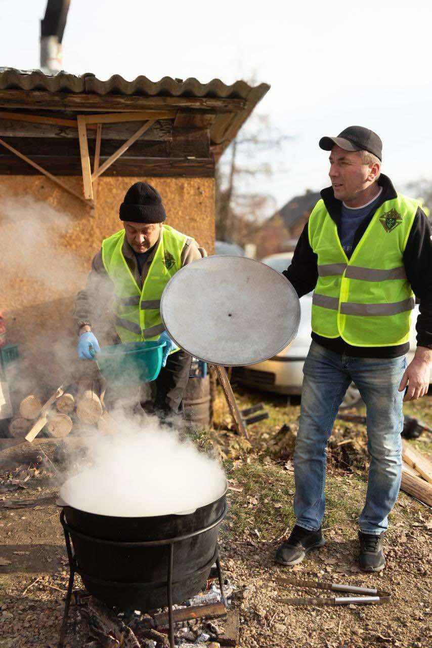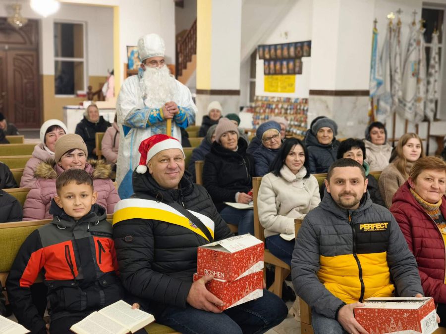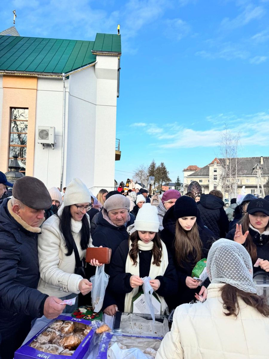 «Асортимент продуктів був великий. "Лицарі Колумба" смажили коропа на мангалі, варили уху, пекли картоплю. Багато людей позносили пляцки, трубочки, пончики, холодець, борщ, кабачки, запечені та посмажені скумбрія, щука, солодкі чупа-чупси. Катехизаційна школа напередодні зробила майстеркласи з виготовлення приблизно 200 новорічних прикрас для ялинок. Те, що присутні придбали, таким чином долучилися до допомоги військовим», — поділився настоятель о. Анатолій Козак.