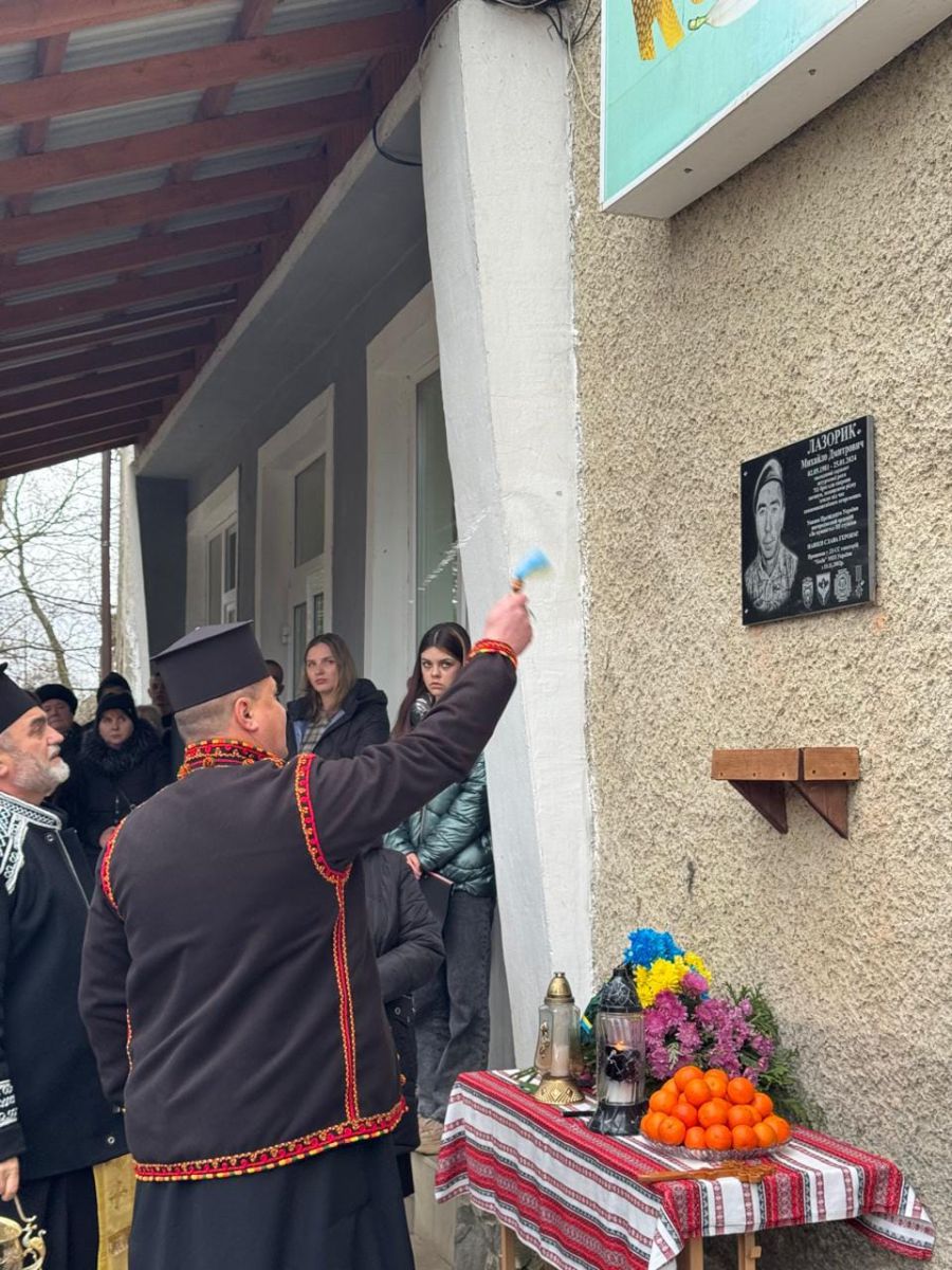 На подвір’ї санаторію, в якому загиблий Михайло Лазорик працював медбратом, зібралися рідні, колишні колеги, духовенство, діти, які наразі відпочивають в оздоровчому закладі. Участь у відкритті меморіальної дошки Михайлу Лазорику також взяв в.о голови Косівської районної військової адміністрації Василь Жмендак.