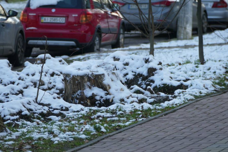 Чекають своєї черги на зрізання декілька старих, сухих дерев. В іншому місці на вул. Хмельницького корчують і видаляють пеньки від уже зрізаних тополь.