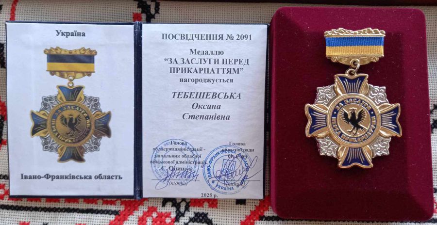 Довідка. Відзнака Івано-Франківської обласної державної адміністрації та Івано-Франківської обласної ради — медаль "За заслуги перед Прикарпаттям" заснована Івано-Франківською обласною державною адміністрацією та Івано-Франківською обласною радою.