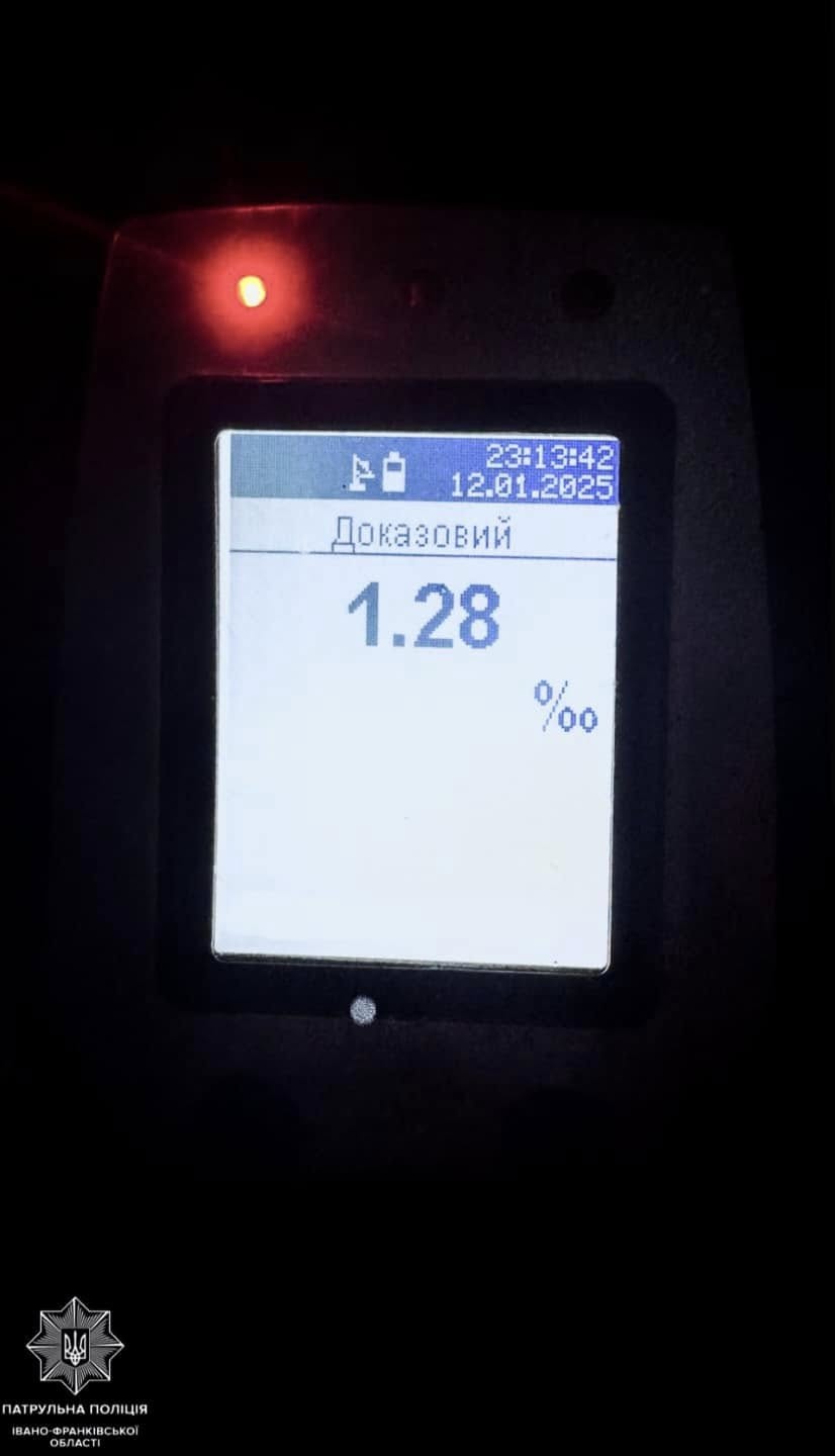 Спілкуючись з водієм, патрульні помітили ознаки спʼяніння. Водій пройшов тестування на місці. Результат огляду — 1.28 проміле алкоголю.