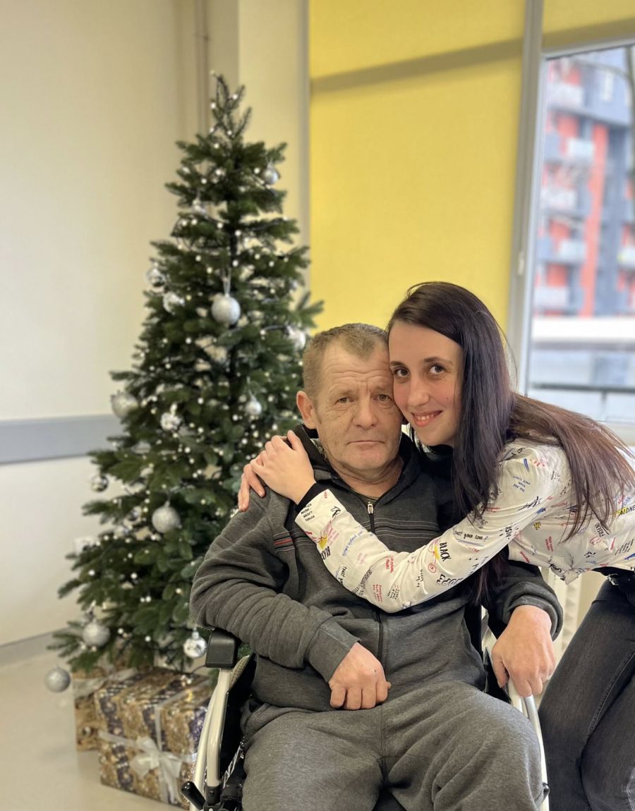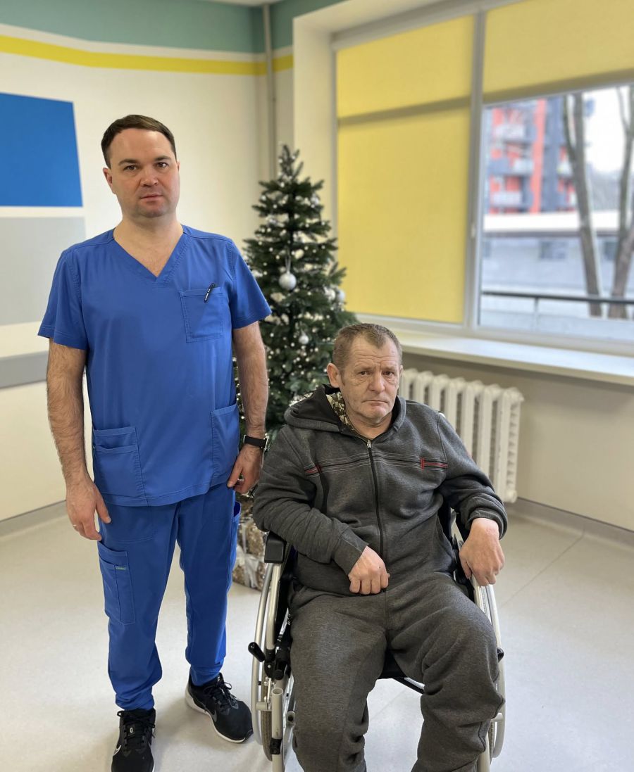 «У пацієнта важка ситуація. До травми у 2021 році він ще й переніс інсульт. На сьогодні може самостійно змінювати положення в ліжку, сам пересідає в крісло колісне. Декілька днів з моєю допомогою і за допомогою палиці ми розпочали потрохи ходити. Але через контрактуру в колінному суглобі поки він може ставати тільки на носок, не повністю розігнувши ногу. До цього його нога взагалі не рухалась, зараз уже згинання і розгинання робить».