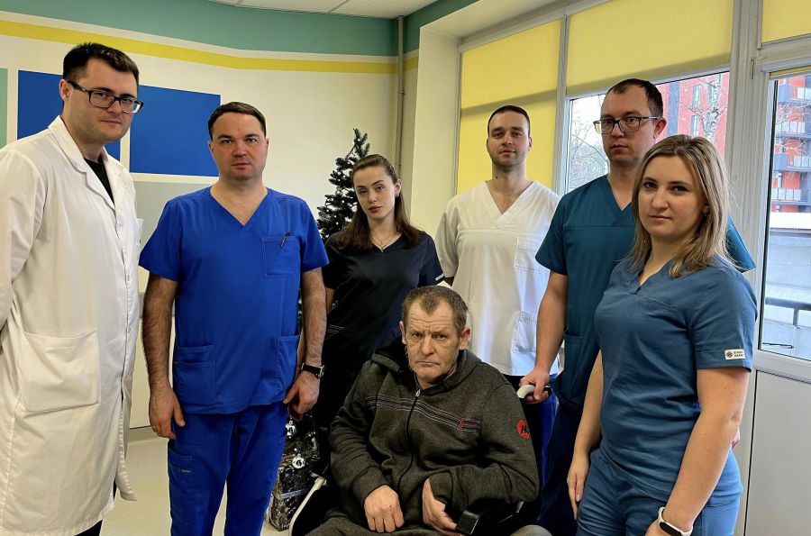 «Ще тоді у 2022 році його прооперували на території ДНР, зробили трепанацію черепа. Опісля він все одно не міг рухати ні ногою, ні рукою. Фактично був повністю лежачий. Думали, що це наслідки інсульту, тільки зараз виявили, що наявним є перелом шийки лівої стегнової кістки», — розповідає історію хвороби пацієнта завідувач відділення травматології, ортопедії і реконструктивної та пластичної хірургії, особистий лікар Степан Зелик.