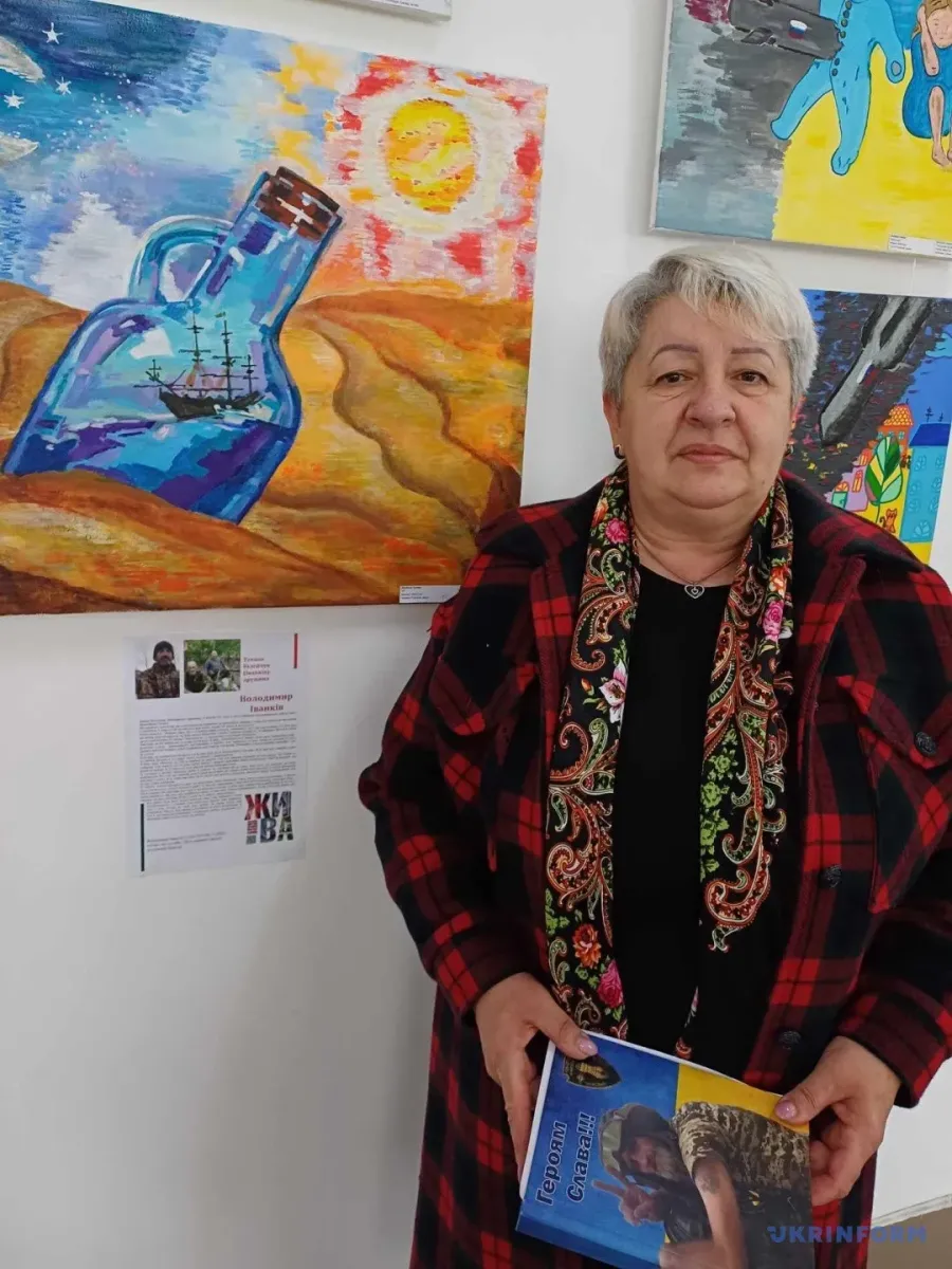 В Івано-Франківську свою першу картину показала і дружина загиблого Володимира Іванківа, Тетяна Білейчук. Жінка за професією психолог. Розповідає, у 2016 році вони з чоловіком вирішували, хто з них піде на війну. Тоді чоловік потайки подався на фронт добровольцем. Воював у 128 окремій гірсько-штурмовій. Казав, що це вже була його друга сім’я.