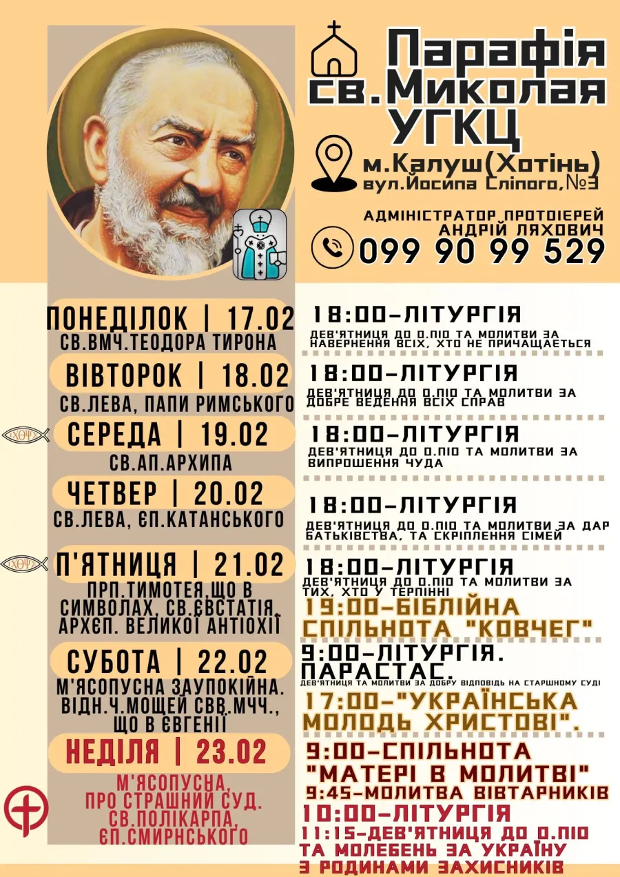 Анонс на наступний тиждень у парафії святого Миколая УГКЦ:
