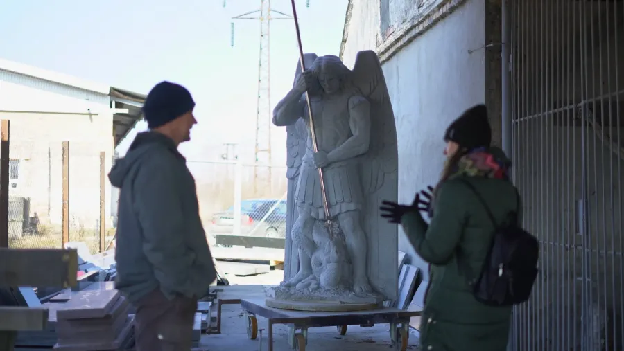 На створення однієї скульптури Архангела Михаїла потрібно до пів року. Спершу — зліпити з глини, тоді — перевести у гіпс, а насамкінець — вирубати з граніту. Автор розповідає, що найважче — брати «болгарку» в руки, одягати протигаз і зранку до вечора пиляти граніт. Щодо відтворених рис мужності, то в голові уже є розуміння.