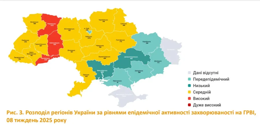 "Протягом звітного тижня за даними рутинного епідеміологічного нагляду серед загальної кількості пацієнтів із ГРВІ зареєстровано 490 пацієнтів, які мали позитивний результат тесту на Covid-19, що на 7,1% більше показників минулого тижня. У структурі ГРВІ питома вага захворюваності на Covid-19 становить 0,2%. Із загальної кількості пацієнтів із Covid-19 госпіталізовано 220 (44,9%) осіб. Найбільша кількість випадків COVID-19 на 100 000 населення зареєстрована в Івано-Франківській області", — йдеться у звіті Центру громадського здоров’я України.
