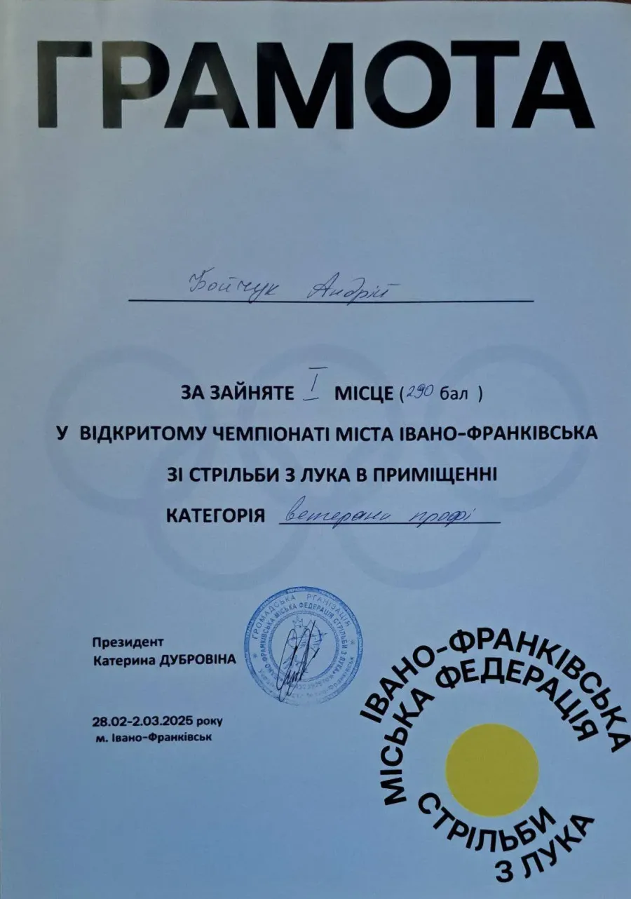Із результатом у 290 балів Андрій Бойчук виборов 1 місце у категорії "ветерани профі".