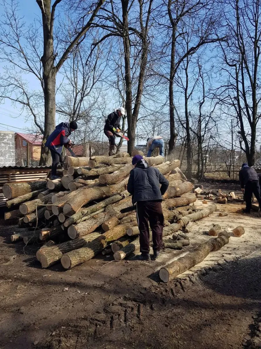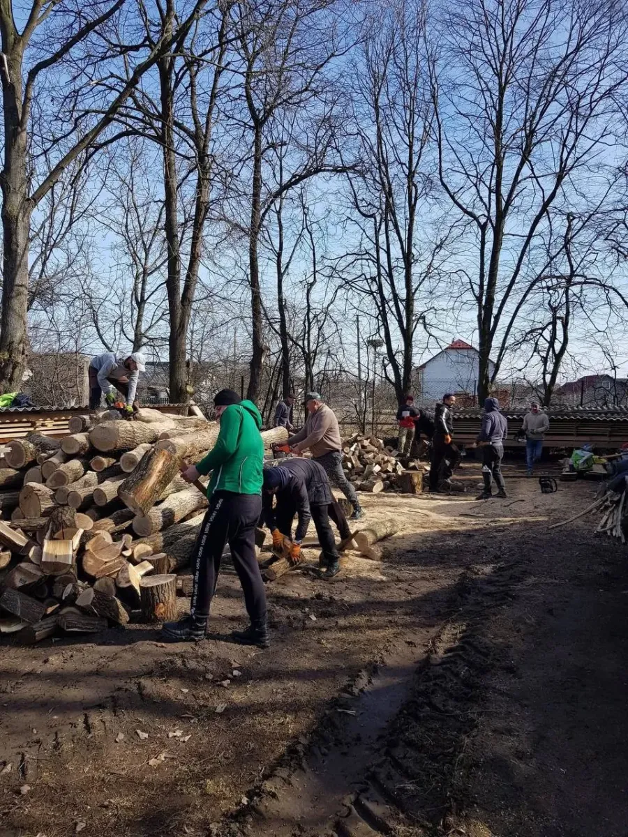 Тоді працювало 15 чоловіків із церковного братства та спільноти «Лицарі Колумба». Цієї суботи, 8 березня, хочуть заготовити дрова і для дружини й донечок загиблого захисника Василя Олійника.