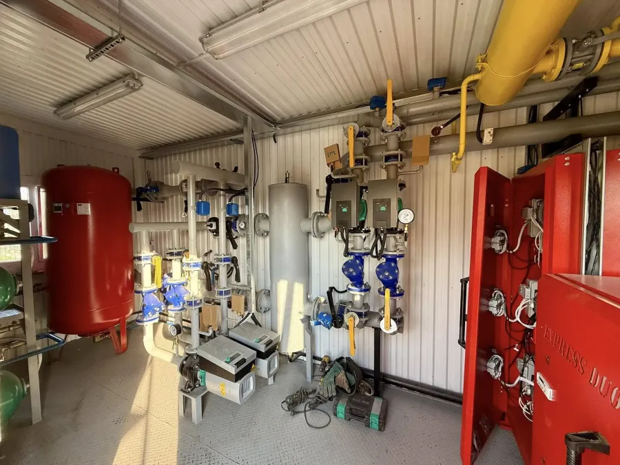 У модульній котельні вже завершено всі внутрішні монтажні роботи, встановлено насосне обладнання та електроніку.