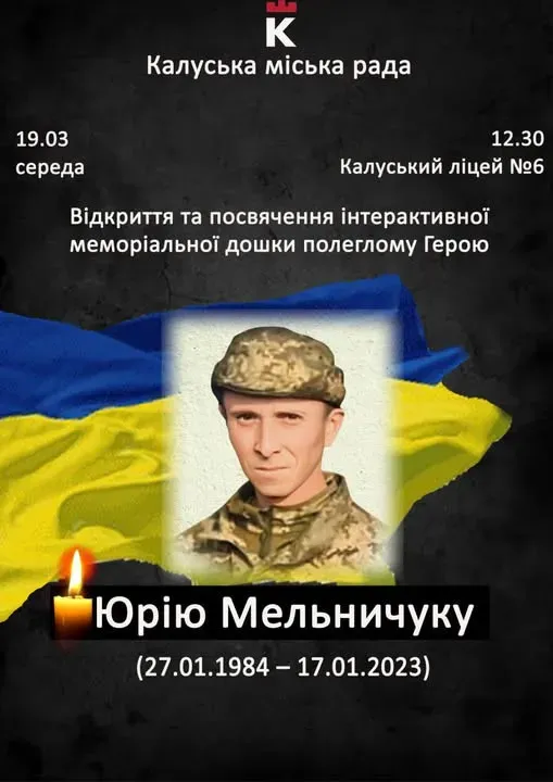 Відкриття та освячення інтерактивної меморіальної дошки відбудеться у середу, 19 березня, у Калуському ліцеї №6 за адресою: Калуш, вул. Стуса, 13. Початок — о 12:30.
