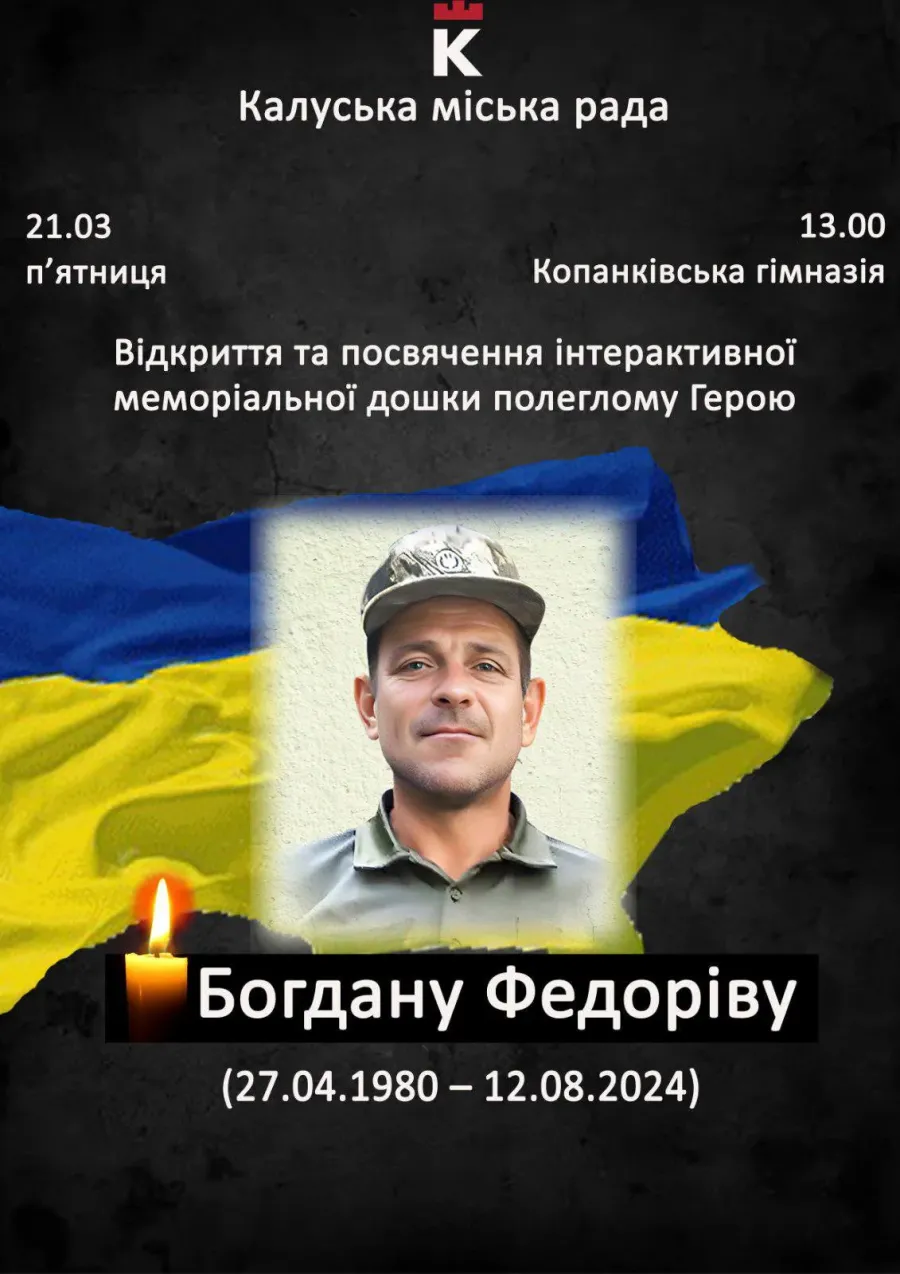 Відкриття меморіальної дошки відбудеться у п’ятницю, 21 березня, у Копанській гімназії. Початок о 13:00, інформують "Вікна" з посиланням на Калуську міську раду.