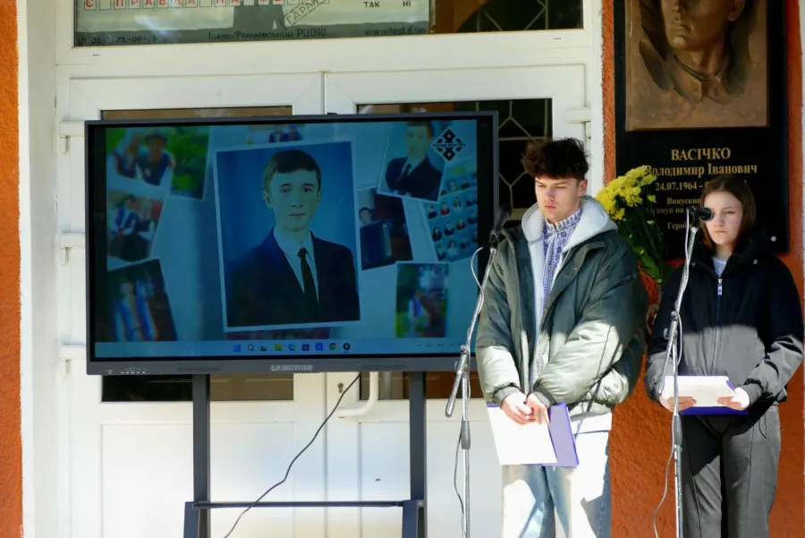 Сумна подія об’єднала сьогодні на шкільному подвір’ї рідних і близьких Героя, ліцеїстів і вчителів, скорботну громаду. Схиливши низько голови, завмерли всі у хвилині мовчання.