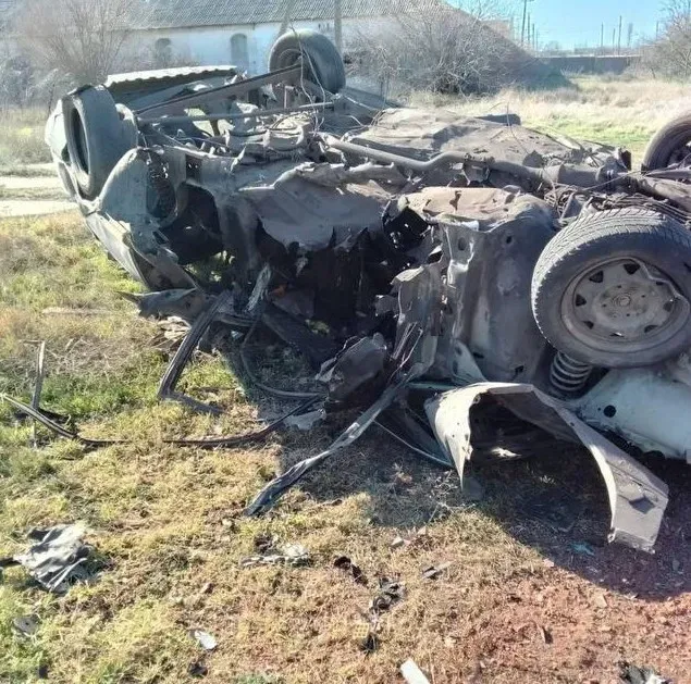 У пікапі перебували двоє офіцерів російської окупаційної армії. Зазначається, що від автомобіля окупантів залишилась груда покрученого металу.