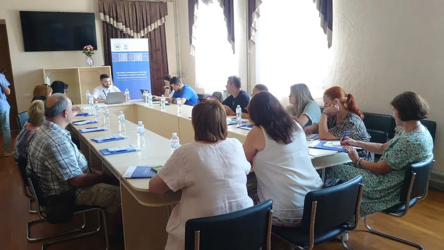 На фото: семінар «Забезпечення тимчасовим житлом ВПО. Державні програми сприяння для придбання житла ВПО» для представниць та представників Ради ВПО при Калуській міській раді та ВПО, які проживають у територіальній громаді. 15 серпня 2024 року.