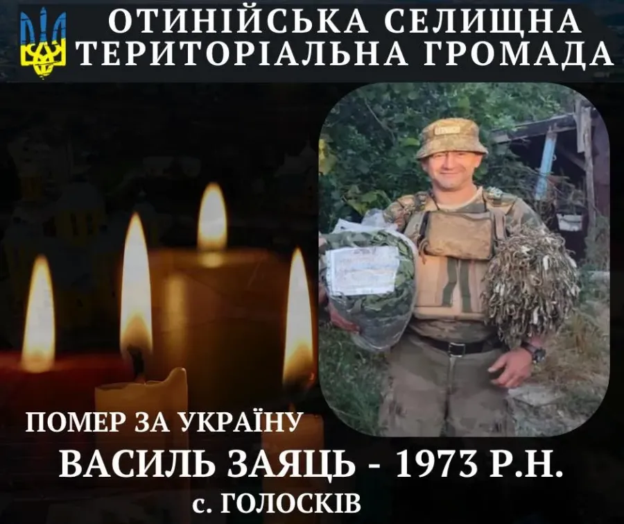 Стало відомо, що 4 квітня 2025 року внаслідок хвороби відійшов у вічність військовослужбовець, житель села Голосків Отинійської громади на Івано-Франківщині Василь Заяць, 1973 року народження, йдеться в інформації на Фейсбук-сторінці громади.