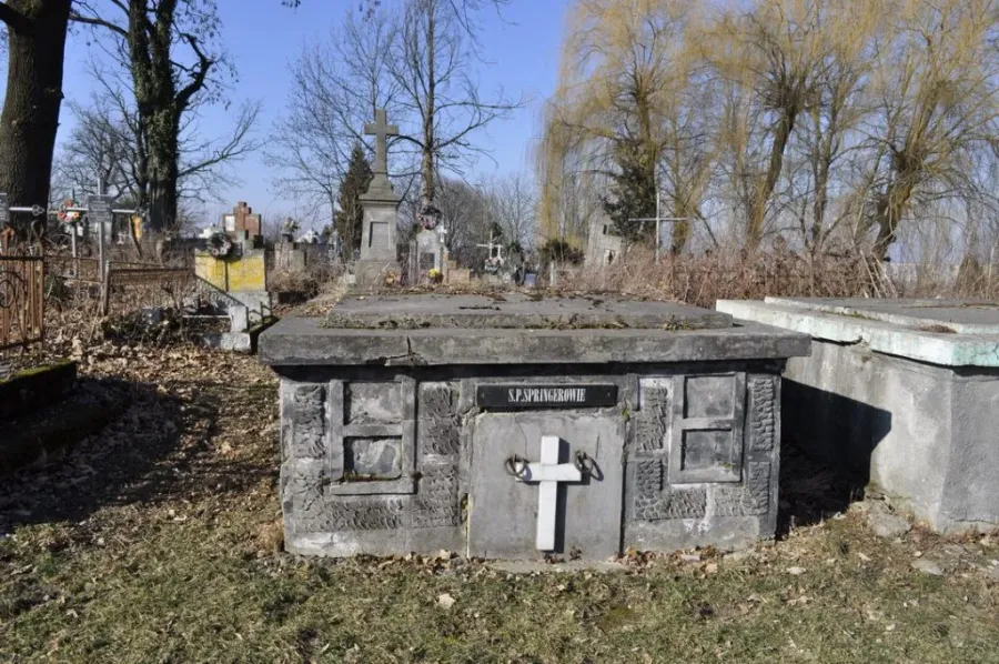 Планував перевезти прах родини в Польщу, але то була клопітка справа і він тільки відновив склеп і зробив таблицю з написом «Ś.P. SPRINGEROWIE».