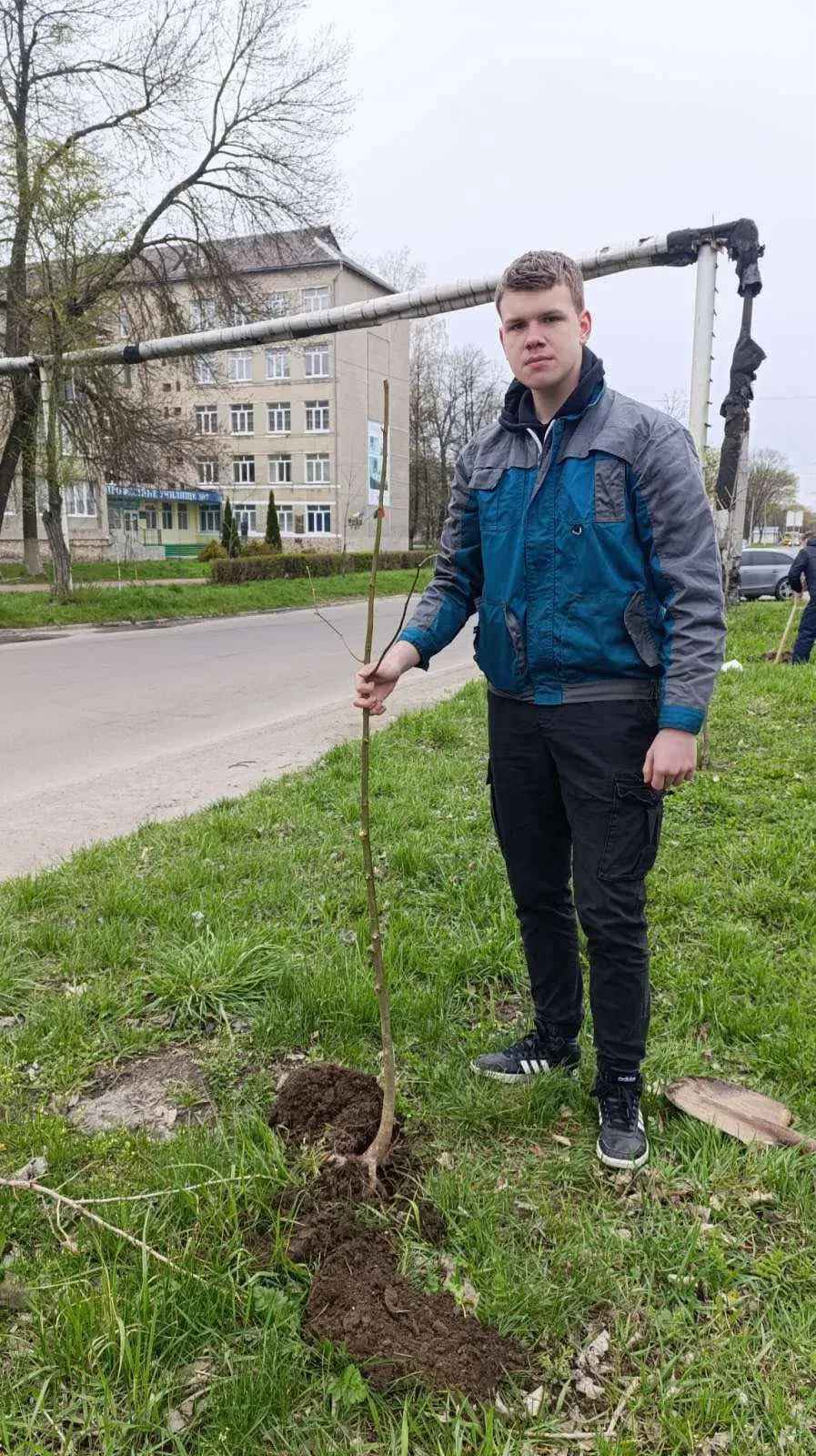 Студент другого курсу спеціальності "Слюсар з ремонту колісного транспорту" Денис Лютий — один із трьох хлопців, які нині висаджували дерева. Каже, що охоче зголосився на таку акцію і при можливості спробує ще.