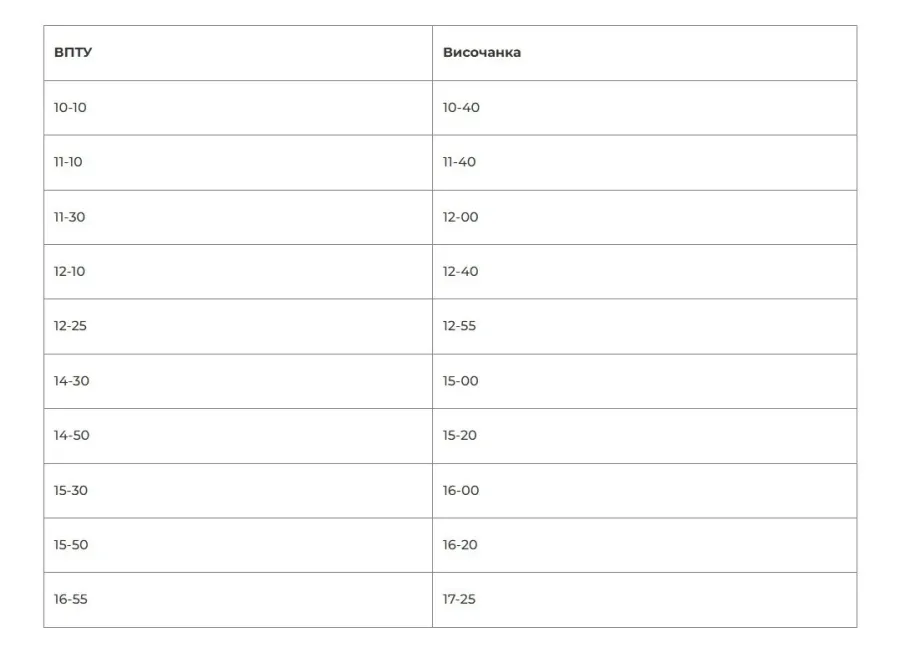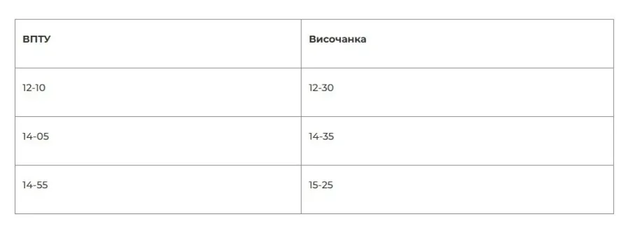 Графік руху додаткових автобусів у неділю, 20 квітня, за маршрутом №8 "Карпатська кераміка — Височанка":