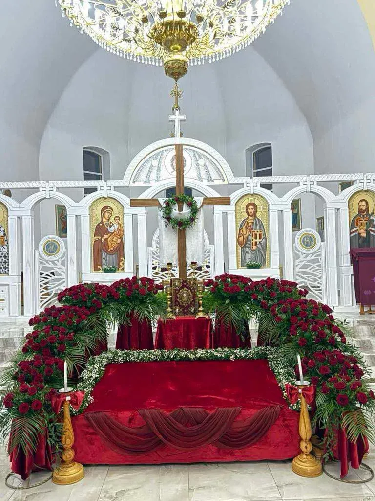 Плащаницю в церкві Парафії Пресвятої Богородиці оздоблюють трояндами уже шостий рік поспіль. З кожним разом прагнуть видозмінювати вигляд. До цього долучаються: отці, церковне братство та сестринство. Але підготовка триває мінімум за добу. Про це «Вікнам» розповіли у церковній управі.