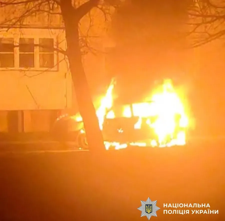 Під час огляду місця події поліцейські з’ясували, що мало місце умисне пошкодження майна шляхом підпалу. Слідчі вилучили обгорілі частини автомобіля та інші речові докази.